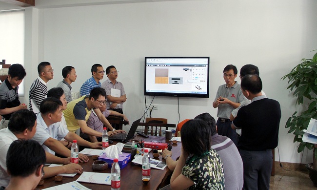 随后,在李新良的带领下,黄一鸿一行参观了园内企业佛山市凌高资讯有限公司——顺德家具网,并与凌高资讯总经理蔡志强就顺德家具网的情况进行交流。