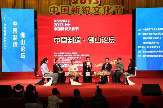“中国制造·佛山论坛”第一轮,论坛一共有两轮。广东东鹏陶瓷股份有限公司董事长何新明,佛山欧神诺陶瓷有限公司董事长鲍杰军,华南理工大学教授、陶瓷行业公共知识分子、众多陶瓷产区发展顾问尹虹,航标控股董事局主席、中国建筑卫生陶瓷协会副会长肖智勇,西班牙凯拉杰特喷墨打印设备公司(KERAjet)东南亚区总经理捷克布(Jacob),泰威科技创始人、董事长兼首席执行总裁胡御霜作为第一轮论坛嘉宾参与了讨论。