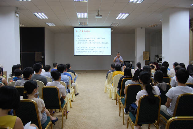 8月23日下午,华南理工大学教授、中国建筑卫生陶瓷协会副秘书长尹虹应《陶城报》邀请莅临佛山新媒体产业园,进行题为《我国建陶产业形势发展分析》专场讲座。尹博士详细介绍2012年以及2013年上半年中国建筑陶瓷产量、质量、销量数据,宏观分析中国陶瓷行业的发展形势,并大胆预测未来陶瓷行业发展方向,睿智风趣,发人深省。