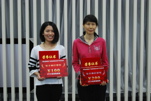 ================= 女子单打前三名 冠军 佛山市沃银网络科技有限公司 陈晓平 亚军 佛山市馥港经贸有限公司 丑琼 季军 佛山新媒体科技有限公司 刘凯冰