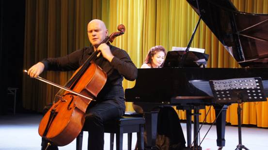 你了解大提琴吗?你能够想象到,当大提琴的浑厚丰满在新媒体产业园云空间音乐厅遇上钢琴的行云流水,会缔造出怎样的完美音乐? 5月24日晚,如果你在现场,我相信,当时你肯定陶醉了;如果你错过了,没关系,园长此刻带你重回现场: ![]() 凉风习习,悠扬的乐章在新媒体产业园云空间音乐厅缓缓奏响,荷兰著名大提琴演奏家罗兰·邓恩与马来西亚钢琴家瓦莱丽·格利戈罗夫大提琴钢琴二重奏音乐会拉开序幕。