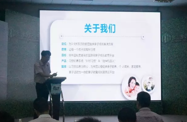 初赛现场路演过程,竞赛者通过PPT,对项目进行介绍,包括市场分析、组织结构、财务分析以及核心竞争力等方面,知名投资机构的专家评审积极互动,现场互动气氛热烈。
