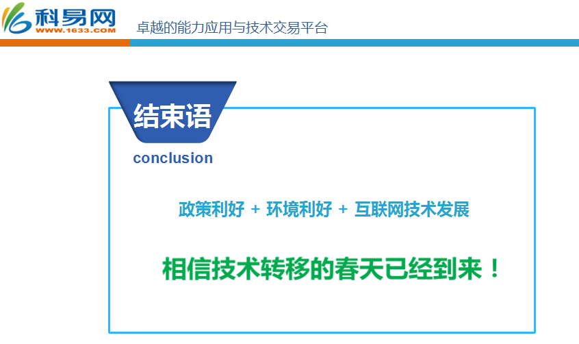 科易网林国海董事长深入浅出地从“技术转移理念分享”和“科易网实践分享”两方面阐述“互联网+技术转移的模式探索与实践”的主题。就如何利用互联网思维和模式服务于技术转移,展开了一场分享交流。 (林国海讲解时,认真听的各位参会人员) 林国海董事长认为:“区域技术创新的焦点工作是技术转移。因为有数据表明,技术创新中技术转移占91%以上,现有成果转化占比很少。”他专注于技术转移和科技服务领域,推进技术市场环境建设,通过对技术转移商业模式的创新,如互联网+科技活动、互联网+技术市场等,构建以“人”为主体的科技成果转化体系。 不过,该怎么提高平台服务频次?提高企业产品技术?林国海表示,应同时关注企业“答疑解惑”、“方案提供”、“问题解决”的三个层次需求,针对三类需求,供给侧需提供对应资源支撑,为平台打通技术转移各节点,或引进中介服务。在政策利好 、环境利好 、 互联网技术发展的背景下,林海国董事长相信:”技术转移的春天已经到来!” ![]() 会后,与会人员就自身企业的实际情况与技术转移的相关问题,向林海国董事长提问,进行问答互动气氛热烈。 ![]() (与会人员 进行提问) 据悉,科易网是一个专注于科技成果转化的专业平台,从市场的角度,以技术转移为主轴,创新科技服务产品,其先后获得国家科技成果转化服务示范基地、现代服务业创新发展示范企业等 6 项国家级荣誉。 |