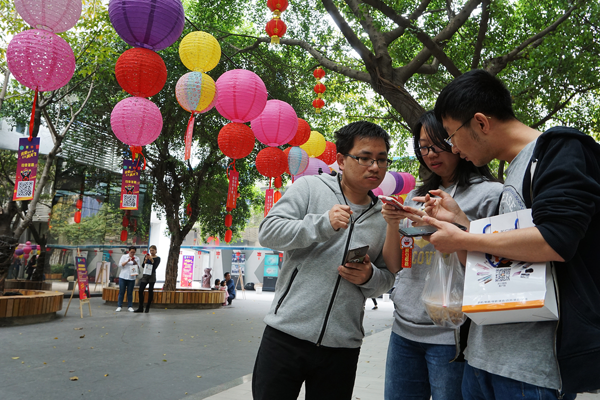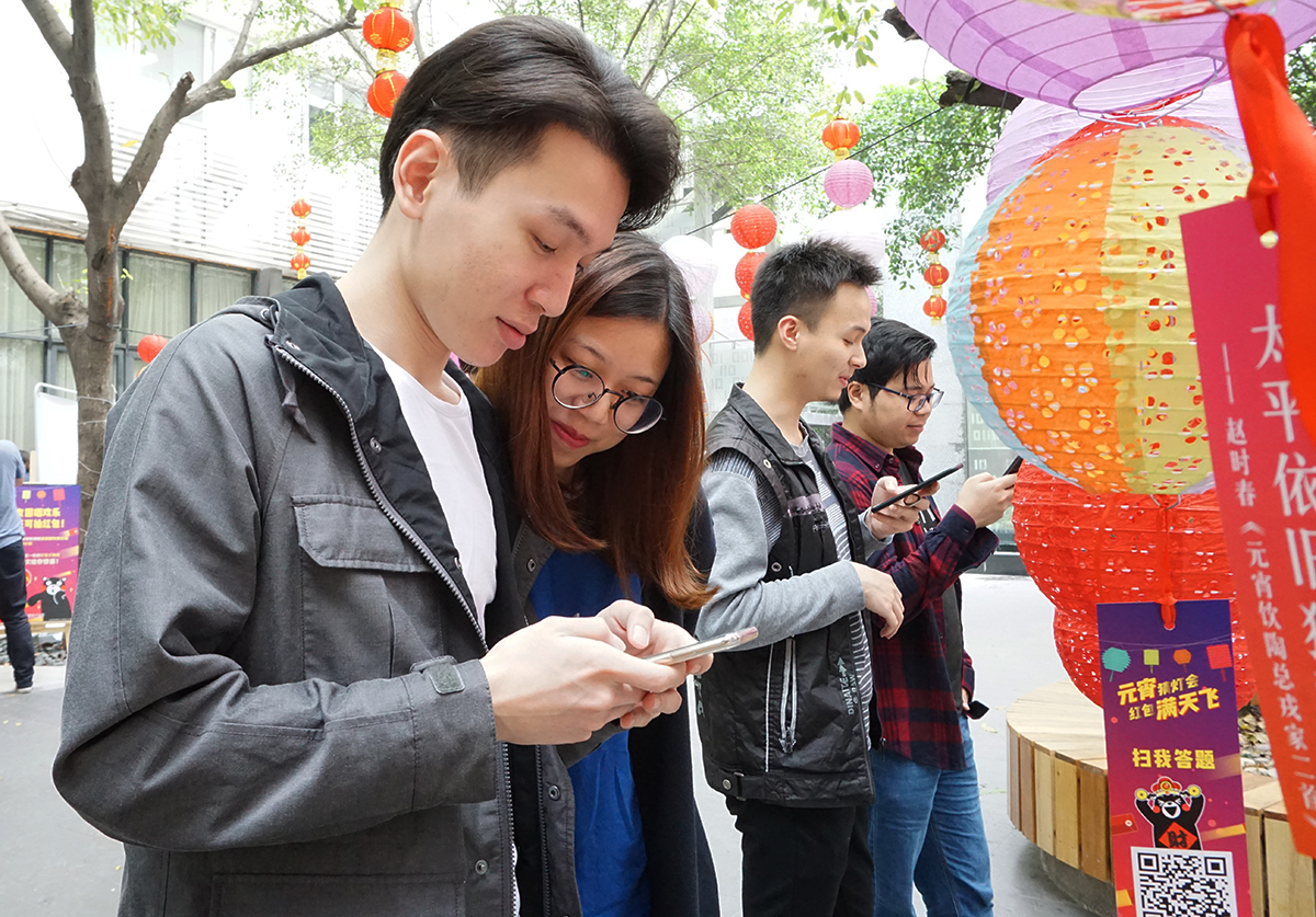 寓意着崭新的2018,大家都发发发发! 年轻人不猜灯谜? NoNoNo~ 摊位刚刚摆好,园区的帅哥美女们就纷涌而至,