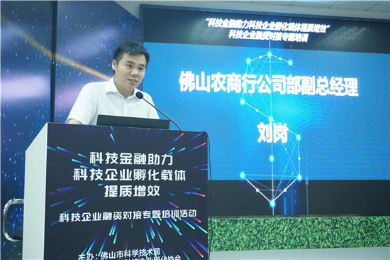 (二)聘任科技金融专员 佛山市科技金融协会会长单位——佛山农商银行的公司部副总经理刘岗先生表示,目前,协会已经专门成立了融资精准对接项目组,并在禅城区落地科技型企业融资“一门式”服务平台,保证每月进行1-2次精准对接。佛山农商行与佛山市、禅城区科技型企业信贷风险补偿基金以及佛山市知识产权质押风险补偿基金合作推出了科技贷和知识产权质押贷,累计为60多户科技型企业发放融资4亿多元,有力地支持了辖内企业的创新、升级。今后也将会持续丰富科技型企业融资产品。