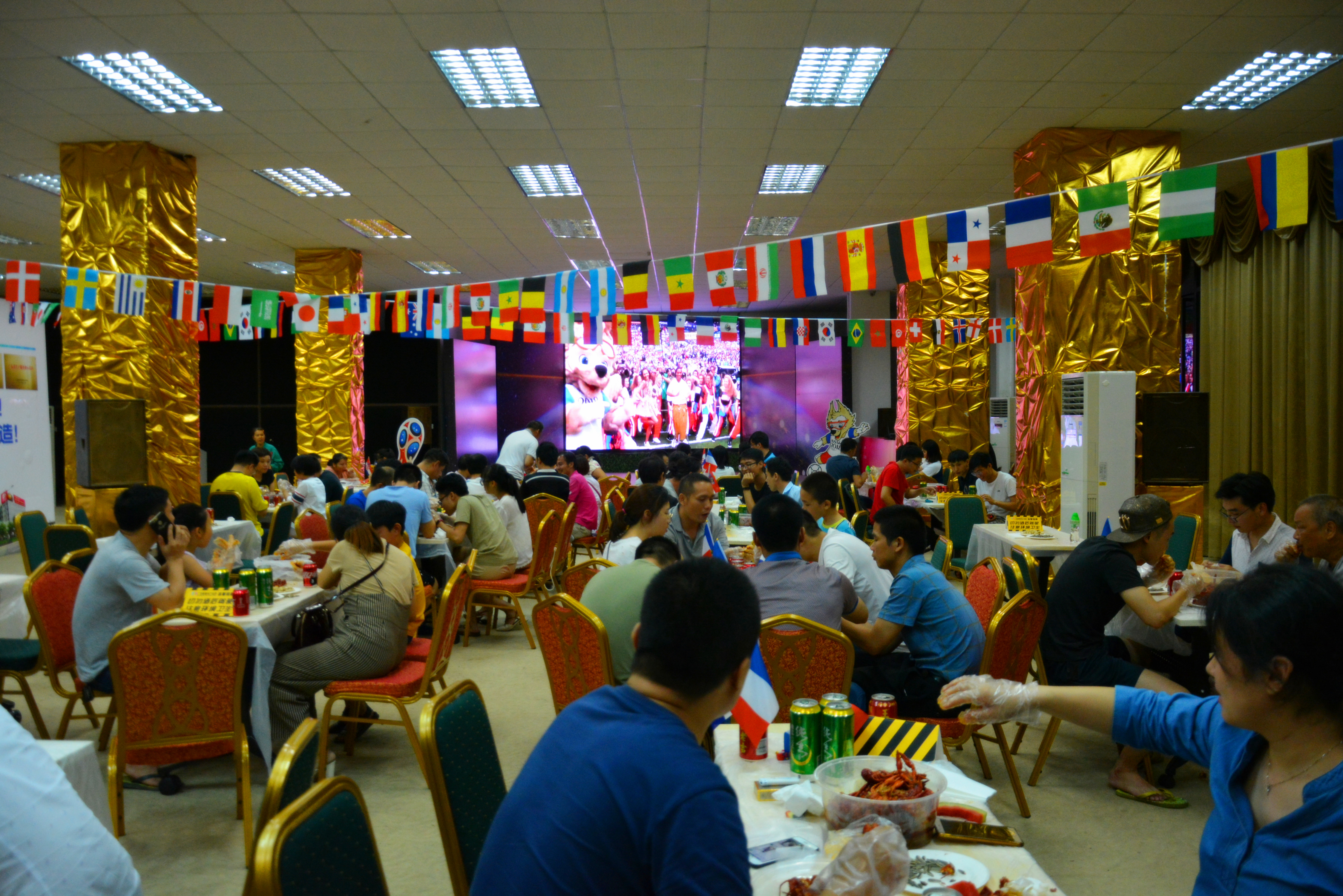 世界杯总决赛开始前两小时,创客们就早早带上自己的同事、家人与朋友签到进场了。面对美食和游戏的诱惑,谁能抵挡得住?球赛还没开始,人就已经坐满了整个会场!