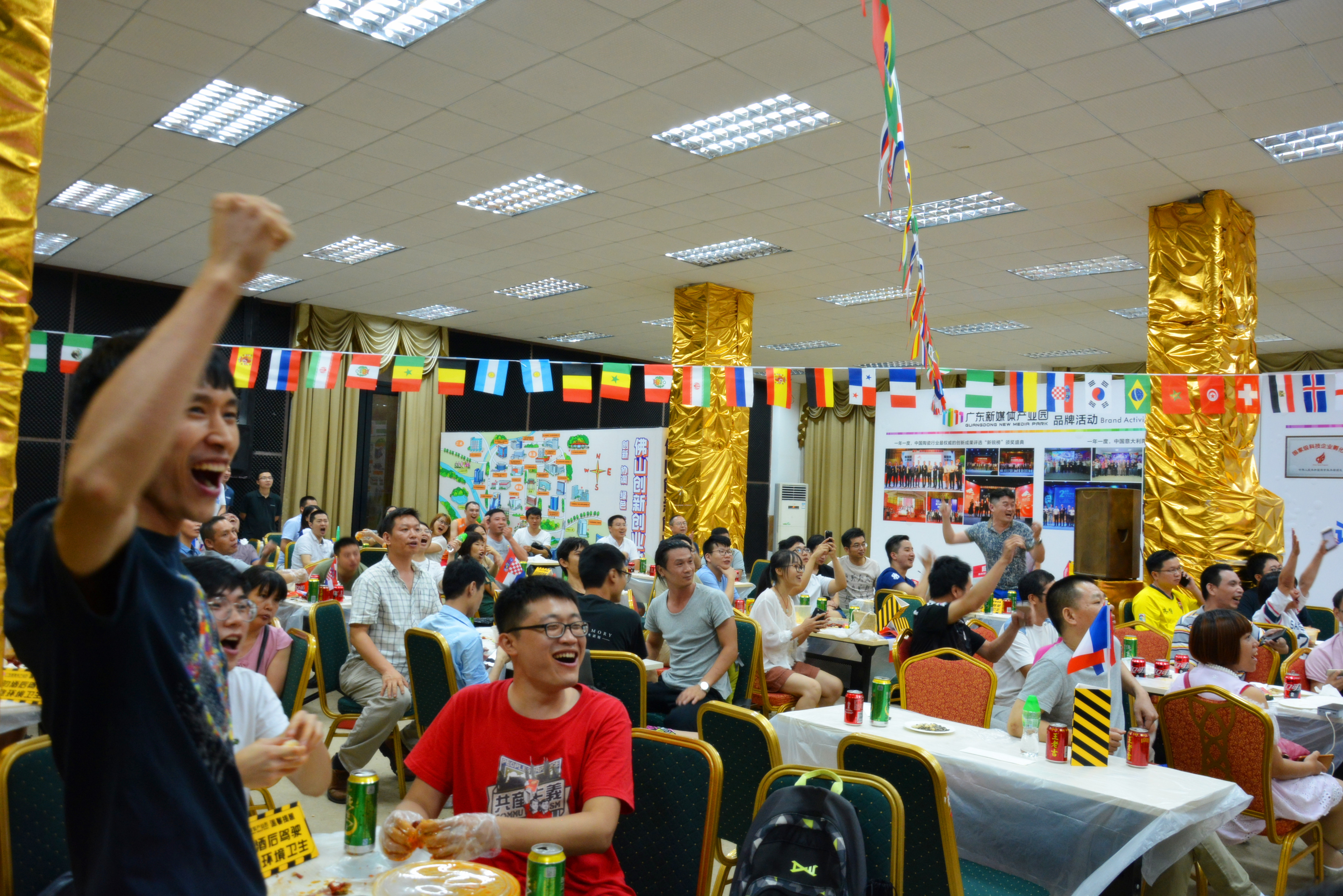 参加“世界杯巅峰夜 创客激情PARTY”活动的百位燃情创客在广东新媒体产业园共同见证了这一精彩时刻。