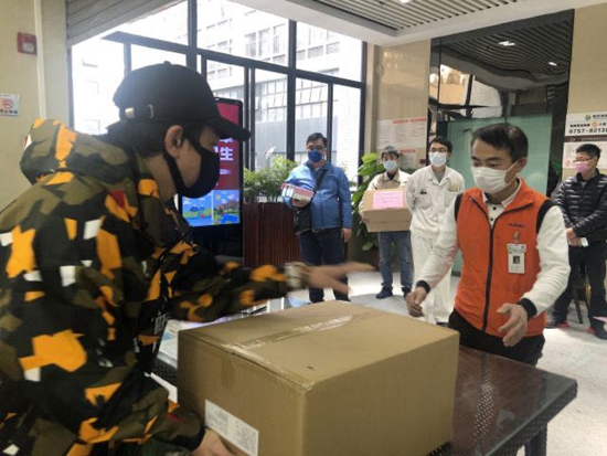 ▲街道向申购企业一一派发了口罩。
