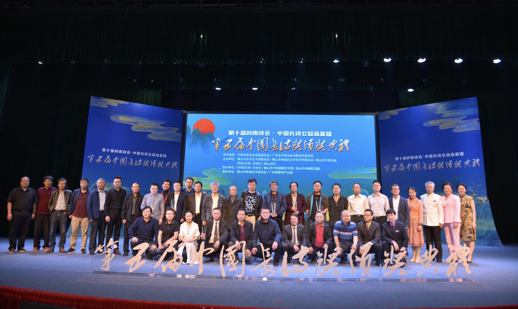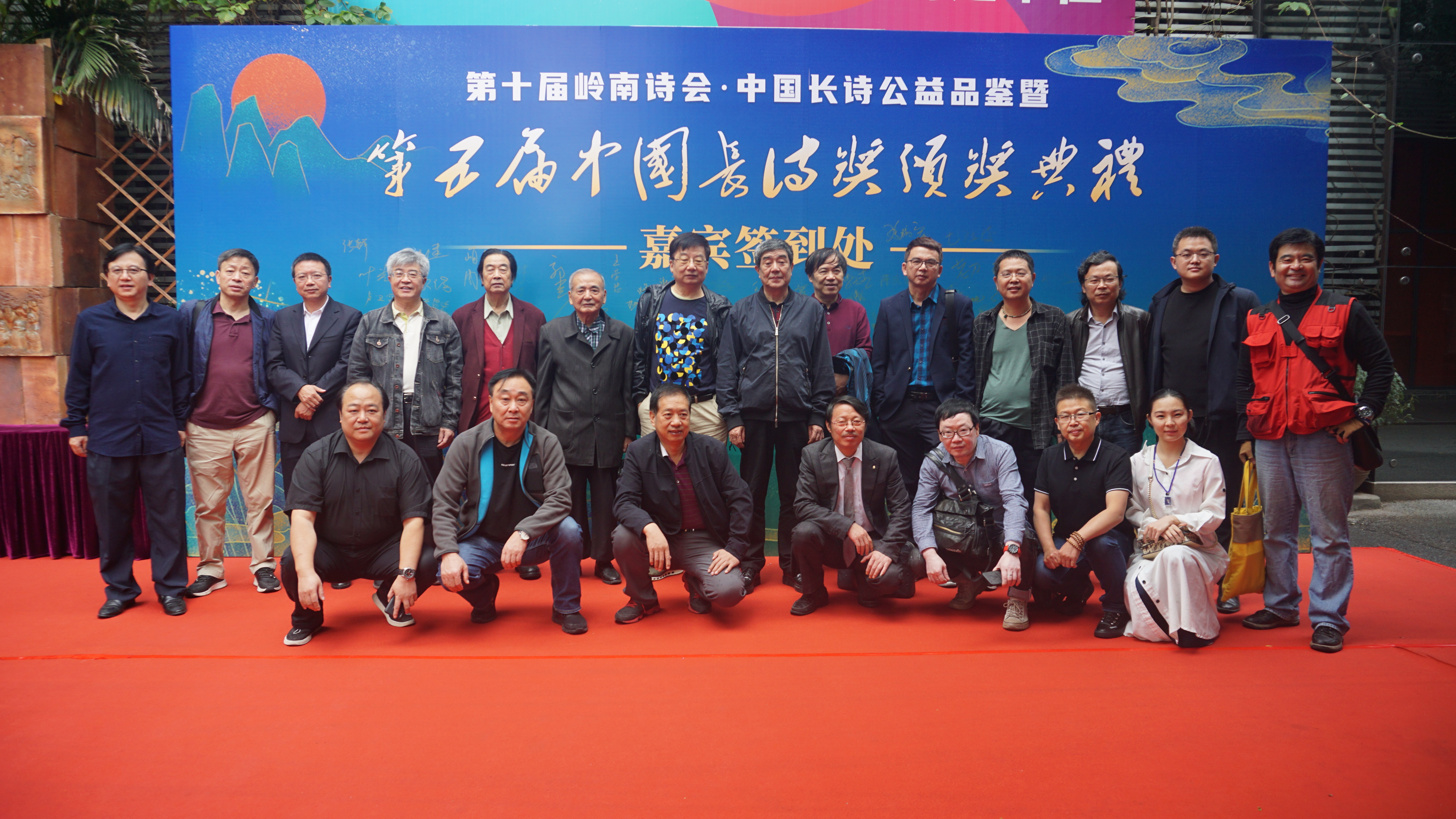中国作家协会全委会名誉委员兼诗歌委员会主任、《诗刊》原主编、本届长诗奖评委会主任、著名诗人叶延滨先生,广东省人大原常委、佛山市人大常委会原主任、著名作家韩英,中国作家协会主席团委员兼诗歌委员会副主任杨克,广东省作家协会副主席、中山市政协原主席丘树宏,广东中华诗词学会名誉会长、广东省司法厅一级巡视员张荣辉,中国传媒大学教授、著名诗人陆健,江西省作家协会原副主席程维,《北京文学》社长助理、第四届鲁迅文学奖编辑奖获得者王童,中国文化管理协会副秘书长雁西、中诗网主编周占林、广东省作家协会主席团成员张况、卢卫平,江苏省太仓市作家协会主席龚璇、广东省作家协会理事兼诗歌创作委员会委员老刀、包悦,《特区文学》副总编辑宝兰、《中华风》杂志社社长王从清、《中国汉诗》杂志主编王长征等名家及部分获奖诗人代表,四川省作家协会副主席、成都市文联主席、著名诗人梁平,湖南省作家协会副主席、湖南省张家界市人大党组书记、副主任胡丘陵,解放军艺术学院原系主任、政委峭岩,中国作家协会会员王学芯、广州市作家协会副主席顾偕等出席颁奖典礼。
