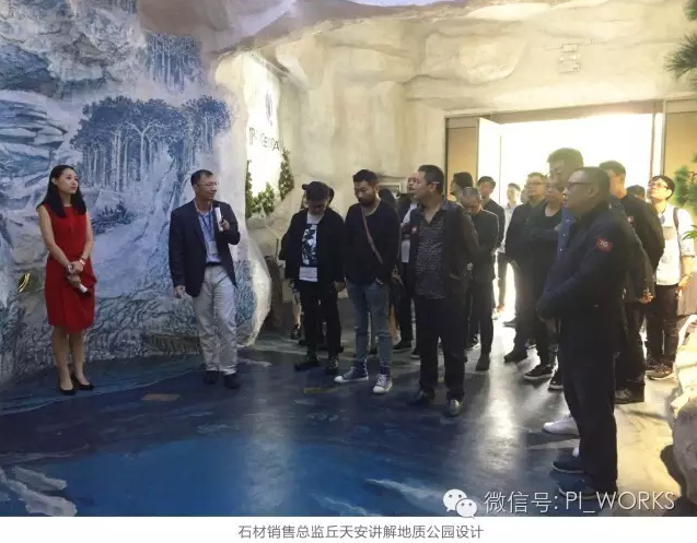 早上10:30随着设计师接送大巴的到来,热情的派的人早已整装待发,派的科技作为是一家以产品工业设计著称的产品梦工厂,一直致力于材料的基础研究,大木联盟的设计师们到来的第一站,首先参观我们的派的地质公园,馆内不仅收藏着超过1300种天然石材400种矿晶,同时它采用仿天然岩洞的设计手法和配搭三维立体地画,整体塑造而成,让设计师门叹为观止。