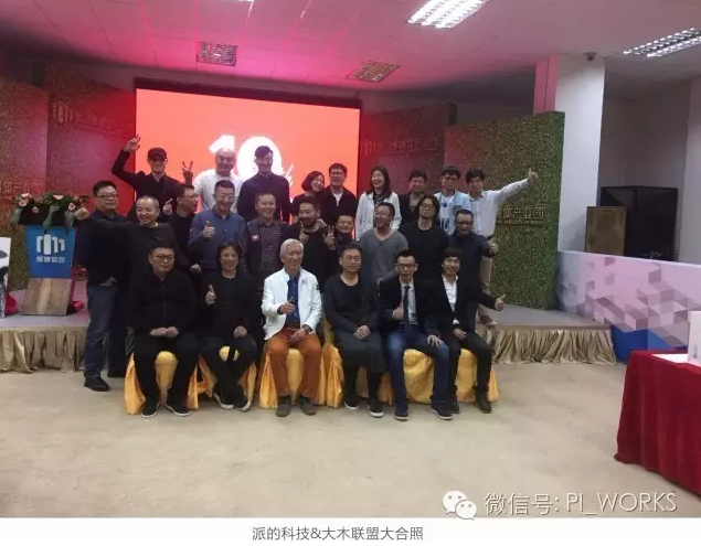 2016年11月13日上午,由派的科技与佛山大木社联合组织的“匆匆十年,全国大木联盟兄弟友情年会”在佛山新媒体产业园拉开帷幕,来自全国大木联盟32位兄弟齐聚佛山派的科技,共同探讨一个关于设计界、制造界的重要议题,“关于材料定制未来的可能性”的跨界交流会,此次交流会更邀请了被誉为中国工业设计之父的柳冠中老师、和大木联盟成员之一的陈耀光老师(中国建筑装饰协会设计委员会副主任)、王兆明老师(中国建筑学会室内设计分会副理事长)等大木联盟顶级设计师。