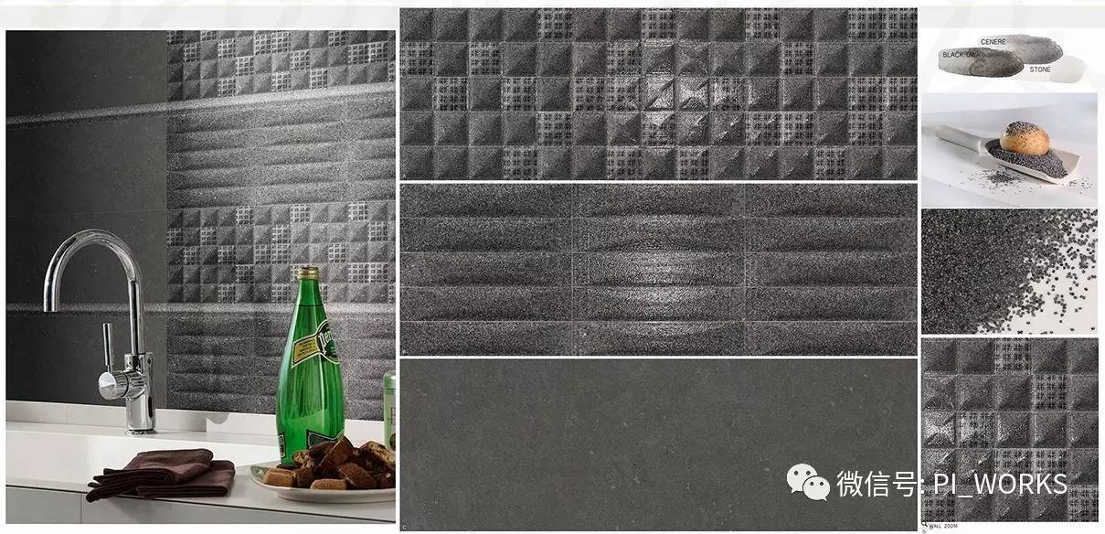派的科技本次获奖作品--《纯美粒材》仿古砖系列 本次产品的设计灵感以芝麻为灵感,仿出了芝麻的温润细腻,利用大面积灰调晕染气质,灰调是永不褪色的潮流;产品结构致密均匀,纹理细腻,诠释了灰调的沉稳宁静。适用空间范围广阔,多用于客厅、卧室、浴室、厨房等室内空间,以及星级酒店、高档会所、博物馆、纪念性建筑等公共工程。 行业意义:专属定制,标杆创造、原创性 本次获奖作品《纯美粒材》生物之源系列是陶瓷行业唯一 一个以食物(芝麻)为主题的仿古砖系列。以米兰世博会的食物文化为创作灵感,刷新传统,突破仿古砖新的可能性。