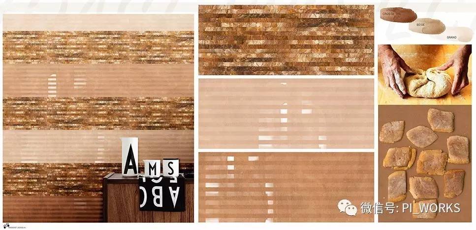 以手工“面包”为创作灵感的《烘焙印记》仿古砖系列 《烘焙印记》仿古砖系列以面包制作成型为创作灵感,呈现出面包简单优雅的外表和细腻丝滑的内质。石材整体结构均匀,表面的块状纹理完美地呈现了面包细腻的质感。温暖的色调不仅适用于普通的家装空间和公共工程上,还可以运用到纪念性建筑上,如纪念公园、名人纪念馆等。