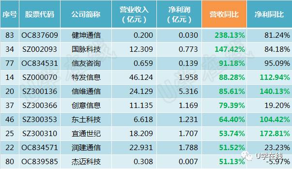 净利润同比增长前十