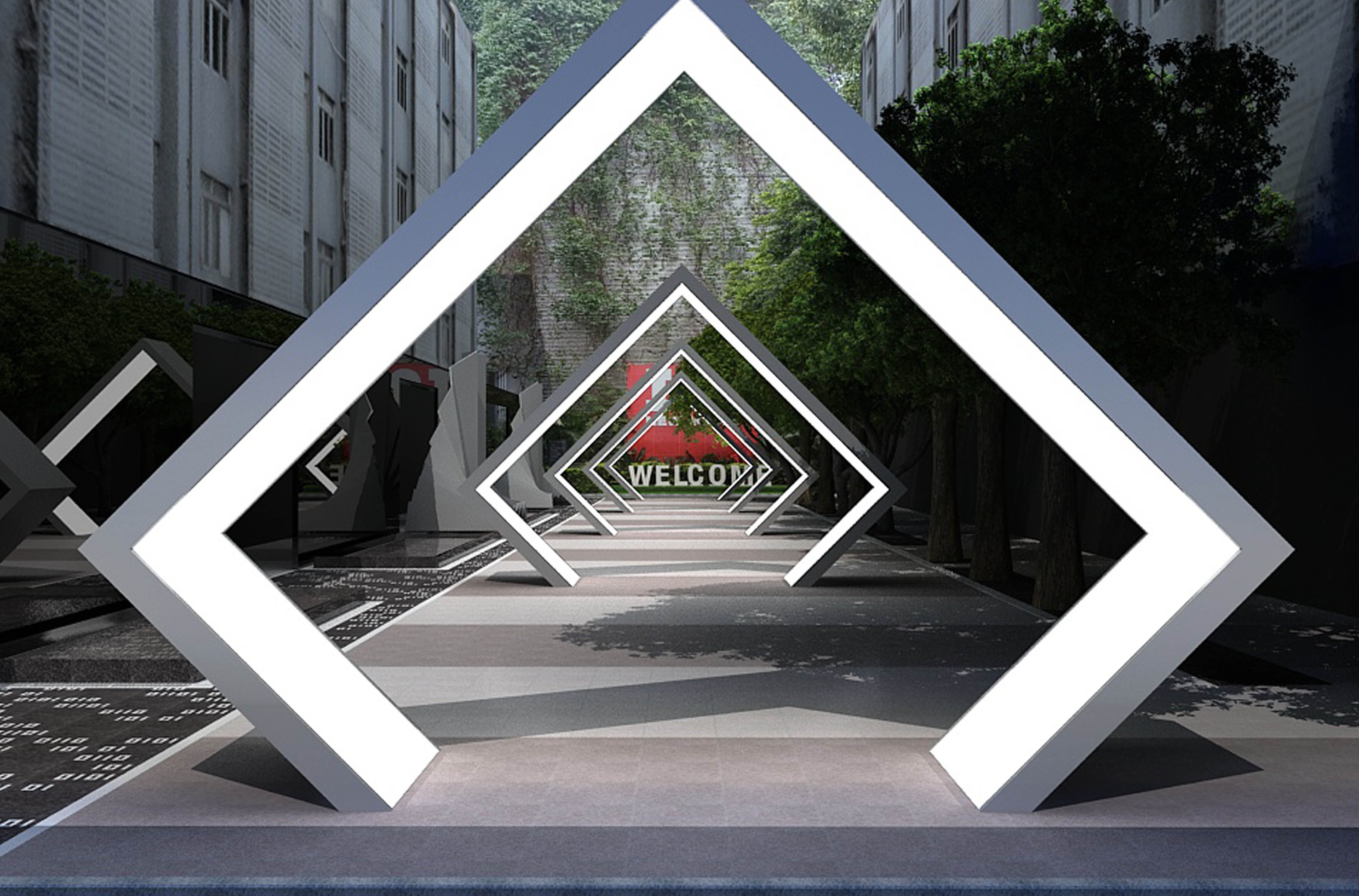 瀑布广场面积566.2㎡,适用于户外茶歇、小型互动游戏等活动。