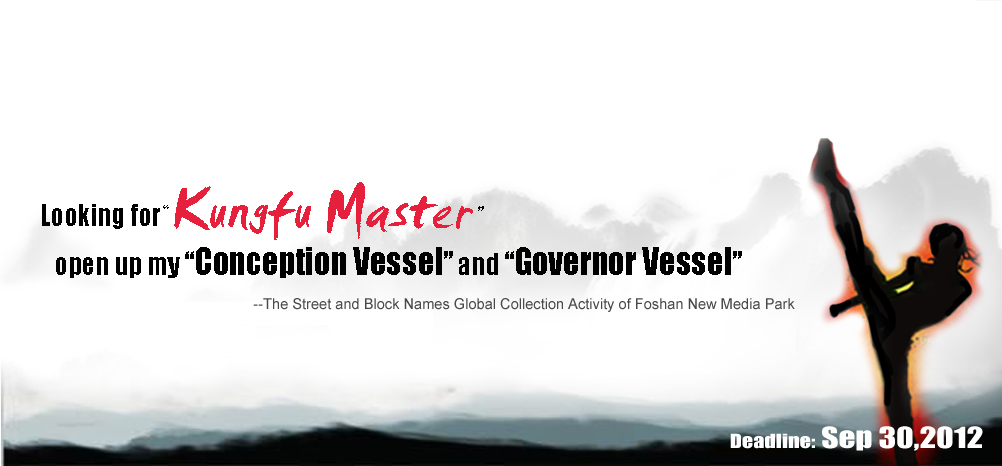 Yo, check it out. I am Foshan New Media Park, from the hometown of kung fu—Foshan. After a year basic training, I become more and more powerful, and fighting skills also produced results. Because of my minor reputation, every top famous master of new media field is coming after me and wants to give me some support. However, my “Conception and Governor Vessel” are not named yet, which is not good for the masters’ genuine-qi smooth operation. So, I am now here devious looking for Kungfu Master around the world to help me to design new names of the vessels, in order to the smooth operation of genuine-qi, All in all,my kungfu could dominate the China Martial arts, then rush out the country and go global, leading new economic opportunities, new cultural experience and new lifestyle. 1) Street names rules: