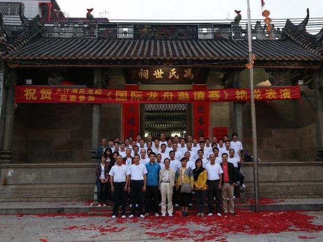 11月4日晚6时,在2012佛山国际龙舟邀请赛结束后,依照惯例,大江村的村民在永思堂组织了一场热闹的龙船饭,佛山新媒体产业园的部分工作人员也被邀请出席此次晚宴。现场气氛融洽,一村老小就在这顿饭间共聚天伦,同时也是全村人为本村龙舟队庆功。 在晚饭前,村里举行龙船部件投标,村民纷纷出价,要赢得对龙头、龙尾、船鼓或木桡的保管权,以讨个好意头,得到更多的福气。一阵鞭炮声过后,龙舟饭准时开席。一张张圆木桌在祠堂里摆开,九个人围坐一桌,个个吃得津津有味,一边吃着龙舟饭,一边聊天说地,觥筹交错,夹杂着欢笑声。餐桌上除了有厨师从早上已经开始准备的各种菜式,还有大江村在艳龙表演中赢得的金猪和美酒。听村里的人说,吃了这些在祠堂祭祀过的奖品,就会获得好意头。 龙舟饭,是珠三角的传统宴饮活动。民间有云:“吃过龙舟饭、饮了龙舟酒,全年身体健康、无忧愁。”虽然这是人们对生活的美好愿景,但也由此产生一种亲切感和归属感。这次龙舟赛,佛山新媒体产业园作为大江艳龙的赞助方,也被邀请来与村民齐吃龙舟饭。这不仅代表大江村对我们园区表示衷心感谢,并且希望与我们共同分享夺冠的喜悦。 ![]()