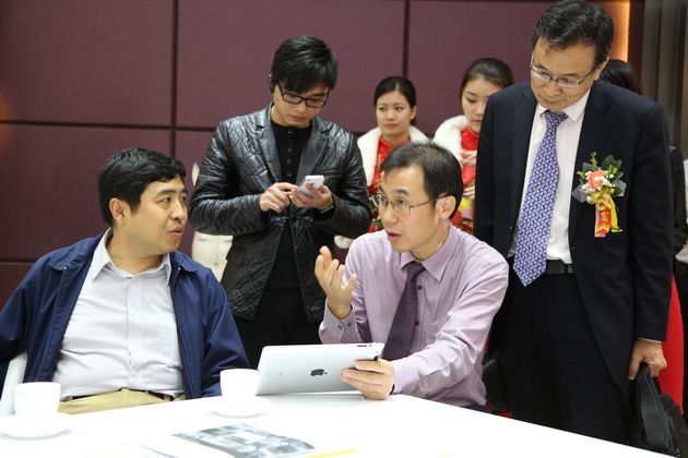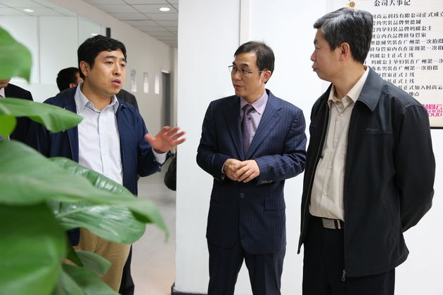 佛山新媒体产业园董事长李新良(中)陪同国家商务部电子商务司副司长蔡裕东(左)、《国际商报》副社长寇亚南等领导参观佛山时尚云有限公司 ![]() 佛山新媒体产业园董事长李新良(中)向国家商务部电子商务司副司长蔡裕东(左)、中国电子商务协会政策法律委员会主任杨坚争(右)介绍陶瓷云