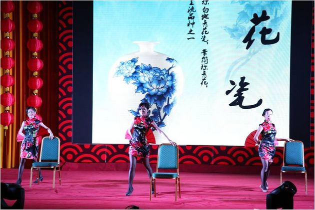伴随着轻缓舒雅的《青花瓷》音乐响起,来自《陶城报》的三位表演者缓缓起舞。身子的起立、旋转,手臂的舒展、收缩,扇子的开启、闭合,舒缓中又带着一股力量。凭着三张椅子,三把扇子,将江南女子的柔美展现出来。 扇子舞是汉族的传统舞蹈之一,道具简单,肢体协调性要求不高,所以很受舞蹈爱好者的喜欢。湖南卫视人气很旺的综艺节目《天天向上》里面,欧弟、俞灏明的扇子舞演出相信给大家留下非常深刻的印象。