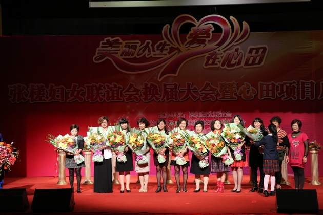 当天,除了表彰总结历年来张槎妇女联谊会取得的成果、完成新旧交接之外,还举行了“心田项目”的启动仪式。 ![]() 小学生们向新一届张槎妇女联谊会会长、理事献花