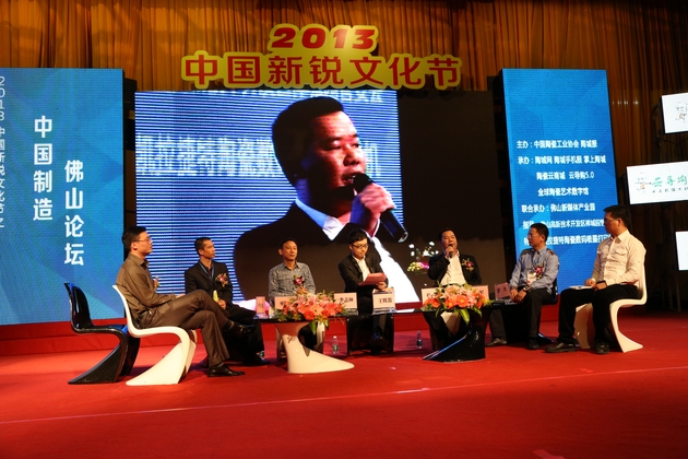 “中国制造·佛山论坛”第一轮,论坛一共有两轮。广东东鹏陶瓷股份有限公司董事长何新明,佛山欧神诺陶瓷有限公司董事长鲍杰军,华南理工大学教授、陶瓷行业公共知识分子、众多陶瓷产区发展顾问尹虹,航标控股董事局主席、中国建筑卫生陶瓷协会副会长肖智勇,西班牙凯拉杰特喷墨打印设备公司(KERAjet)东南亚区总经理捷克布(Jacob),泰威科技创始人、董事长兼首席执行总裁胡御霜作为第一轮论坛嘉宾参与了讨论。