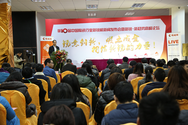 12月17日上午10点,由中国陶瓷工业协会、陶城报主办的第10届中国陶瓷行业新锐榜新闻发布会暨新锐·新趋势高峰论坛,在佛山新媒体产业园科学馆拉开了序幕,来自陶瓷行业、企业代表、媒体记者300余人共聚一堂,见证新锐榜十周年的到来,共同探讨中国陶瓷行业未来的发展趋势。中国陶瓷工业协会秘书长吴跃飞,黄芯红,中国陶瓷行业知名学者、华南理工大学教授尹虹,陶城报管委会主任、总编辑李新良等领导、嘉宾莅临现场。