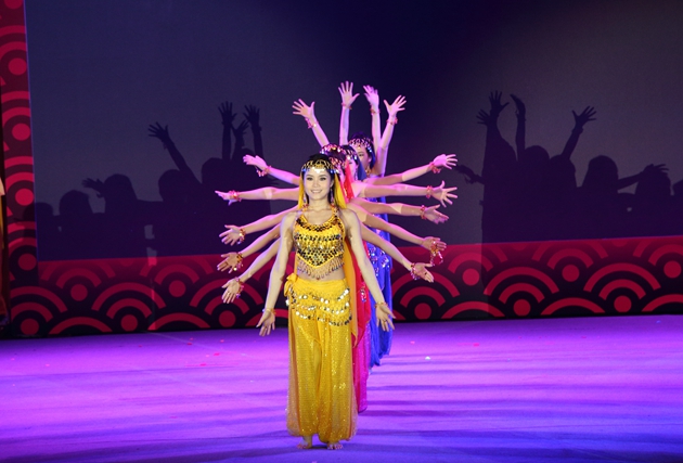 歌舞剧《甄嬛外传之贺新春2014》是由佛山新媒体产业园管理有限公司、陶城报社、佛山新媒体科技有限公司联合原创的别具一格歌舞剧,它用现代内容来演绎影视剧《甄嬛传》桥段,还巧妙地融合了新媒体园因素,特别是反串且造型夸张的华妃娘娘表演绸缎舞环节,观众欢乐的笑声和掌声连一片,该节目无论是原创性,还是新颖角度都受到观众的热烈欢迎。