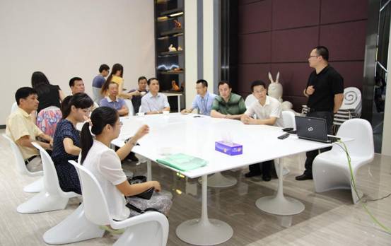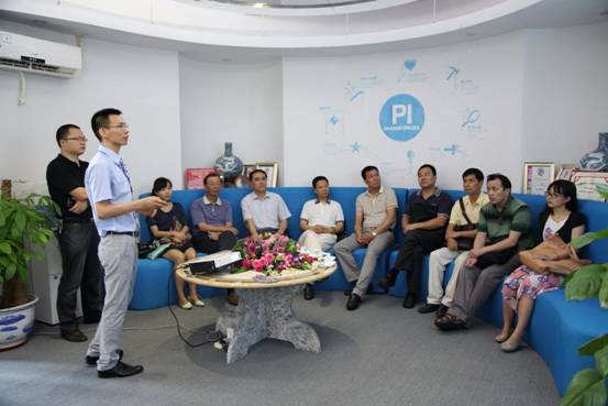![]() 调研组听取派的科技公司董事长丘广安介绍 佛山新媒体产业园副董事长王远江陪同李厚成一行考察了园区工业设计企业佛山派的科技有限公司。该公司董事长丘广安向调研组一行介绍了派的科技公司发展情况及设计理念,“中国制造产业发达,但缺乏附加值高的原创设计,派的科技公司就是要以创新创意服务于制造产业”。听完介绍后,调研组一行还参观完派的公司的产品文化室、创新产品及派的地质公园。