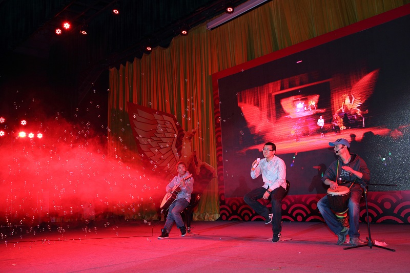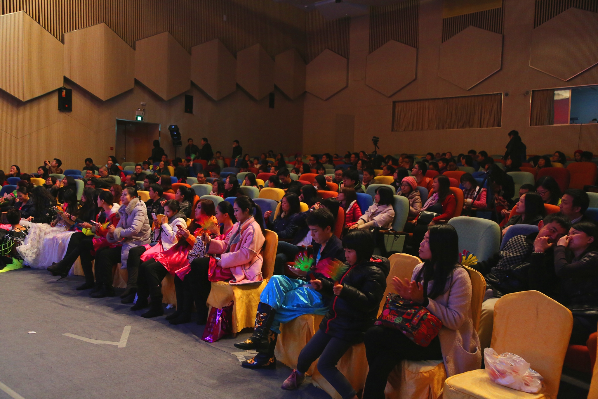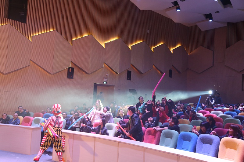 (“欢乐家园 一马当先”迎新晚会) (“云聚梦想 潮涌时代”迎新party) (弹唱节目) (跳舞节目) (互动环节气氛热烈) 音乐厅里配备专业的数字式灯光调控台,多轨声控系统与专业JBL扬声器音响设备,良好的隔音降噪措施,以及舒适的航空椅子。专业级的设备,带来的是震撼级的体验,真正让小伙伴沉醉于欢乐之中,正是年会的目的之行。 (“云空间”灯光、座位 实景一览) (弹唱节目) (话剧《阮玲玉》)