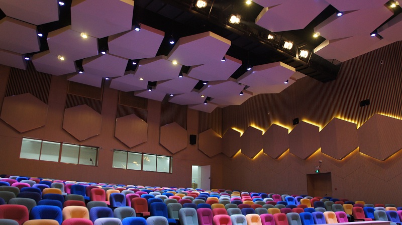广东新媒体产业园的“云空间”音乐厅,占地一千多平方米,空旷的空间能够容纳312个小伙伴之多,观众席采用扇形设计,形如贴心小棉袄,让各位大小童鞋不受视线阻碍的影响,尽情地观看舞台上的节目,感受现场火爆的气氛。