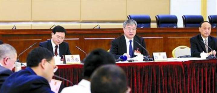 政协委员李新良在座谈会后接受媒体采访