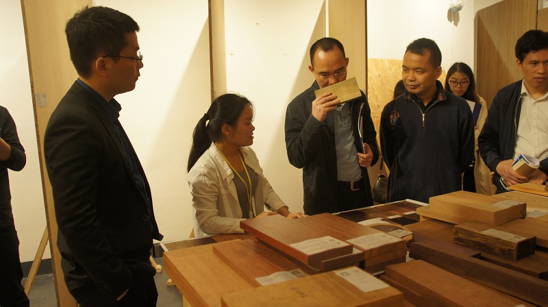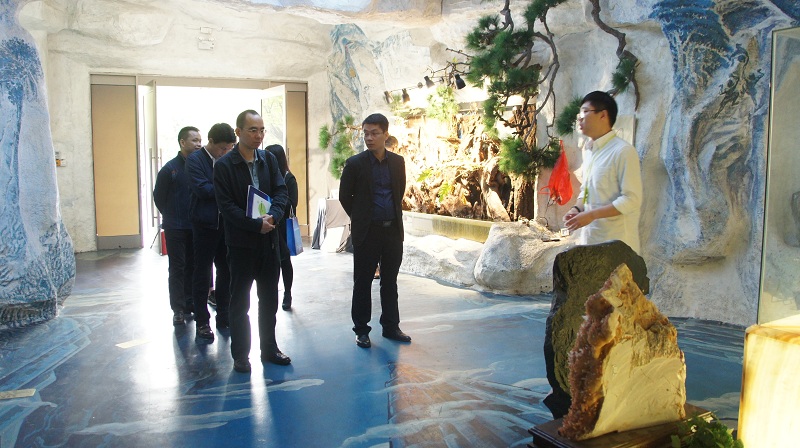 讲解员正向广东省经济和信息化委领导讲解石材的来源