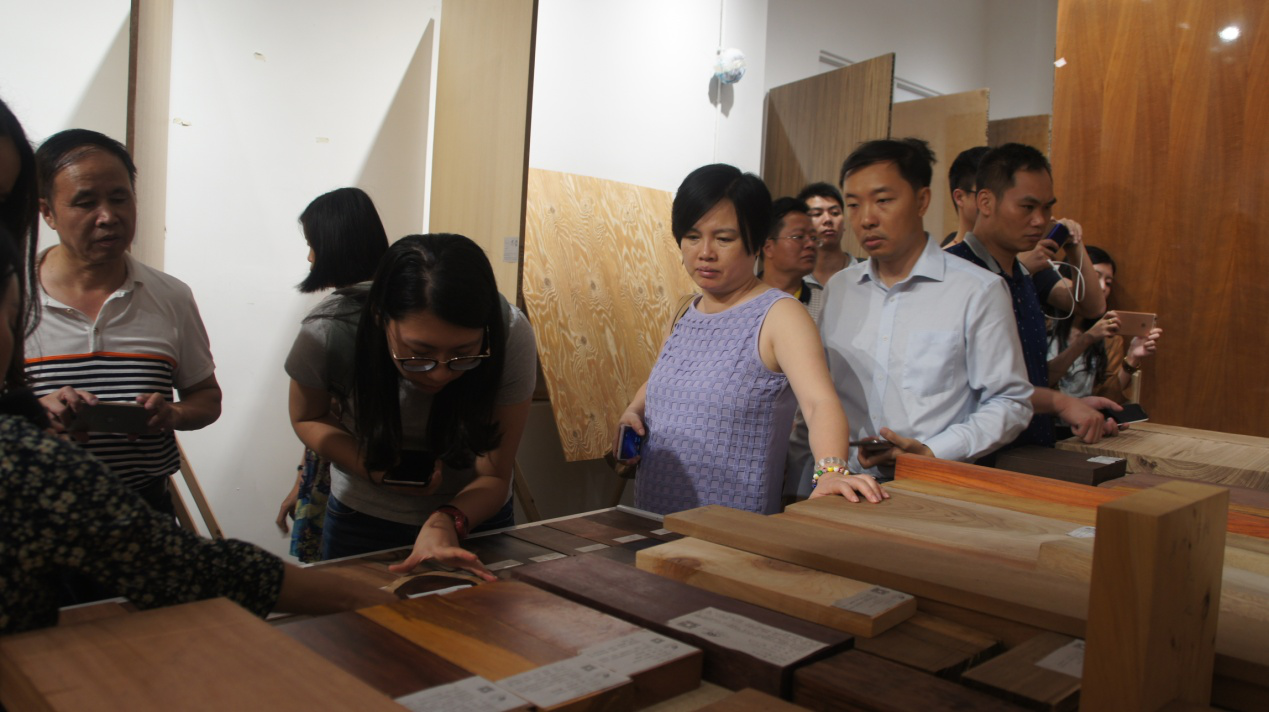 木材馆有522种木材样本,馆长向客人介绍,木材的纹理才是产品设计的精髓