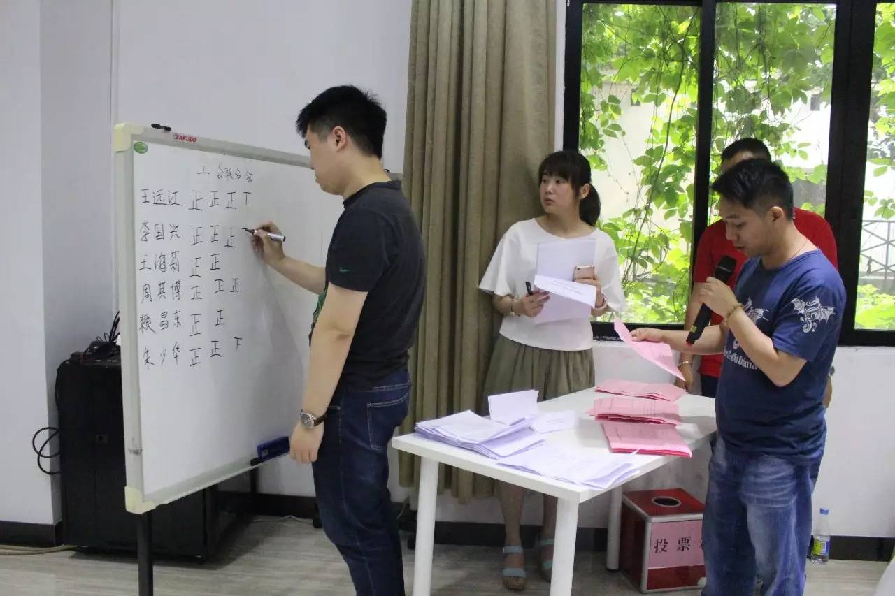 最终投票选举出10名新媒体产业园工联会成员,其中王远江当选工联会主席,李国兴当选工联会副主席兼经费审查委员会主任,钟雪群当选女职工委员会主任,朱少华、周其博、赖昌来为工联会委员,李新成、喻向科为经费审查委员会委员,梁彩梅、谭燕为女职工委员会委员。