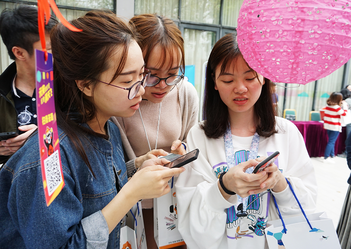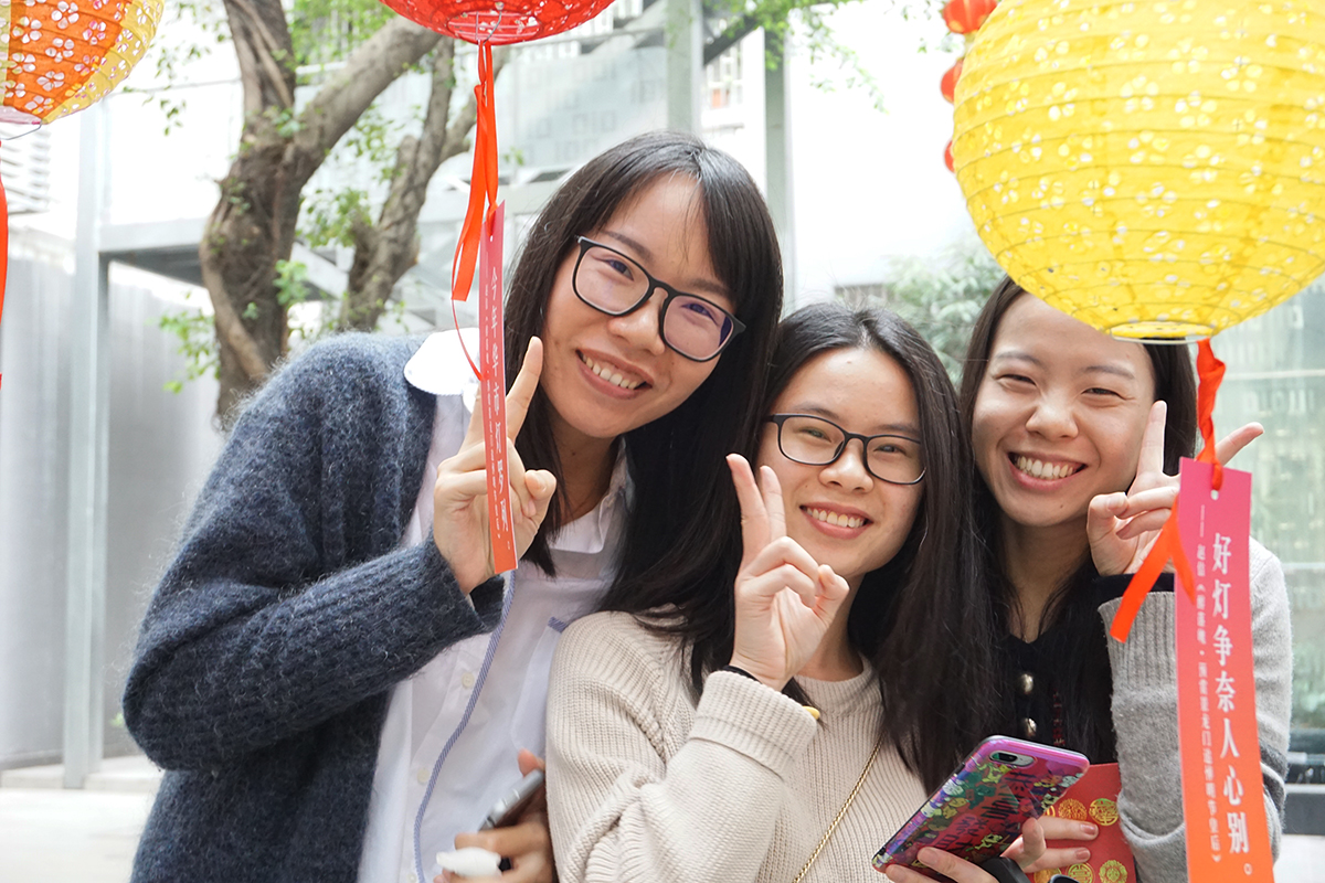 寓意着崭新的2018,大家都发发发发! 年轻人不猜灯谜? NoNoNo~ 摊位刚刚摆好,园区的帅哥美女们就纷涌而至,
