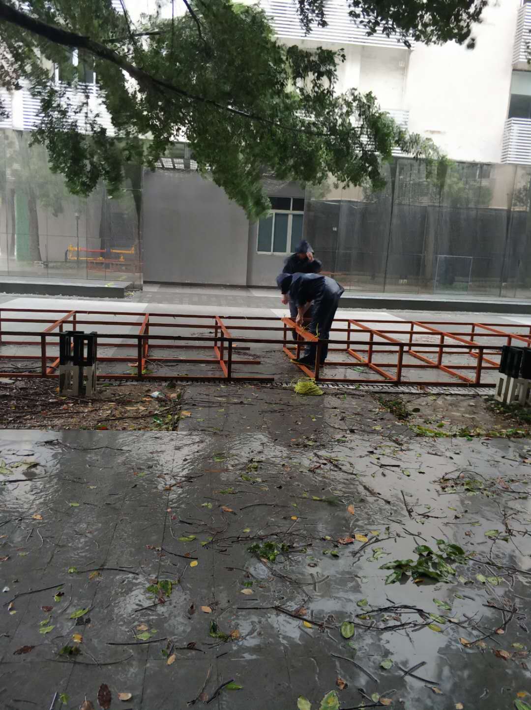 台风过后第二天,他们又马不停蹄地巡查园区、疏通排水、清理断枝,园区干净整洁优美的办公环境得以恢复。感谢这些“逆风而行”的卫士,他们用温暖的身影守护了园区,给园友们营造了一个安全、稳定、美丽的办公环境。
