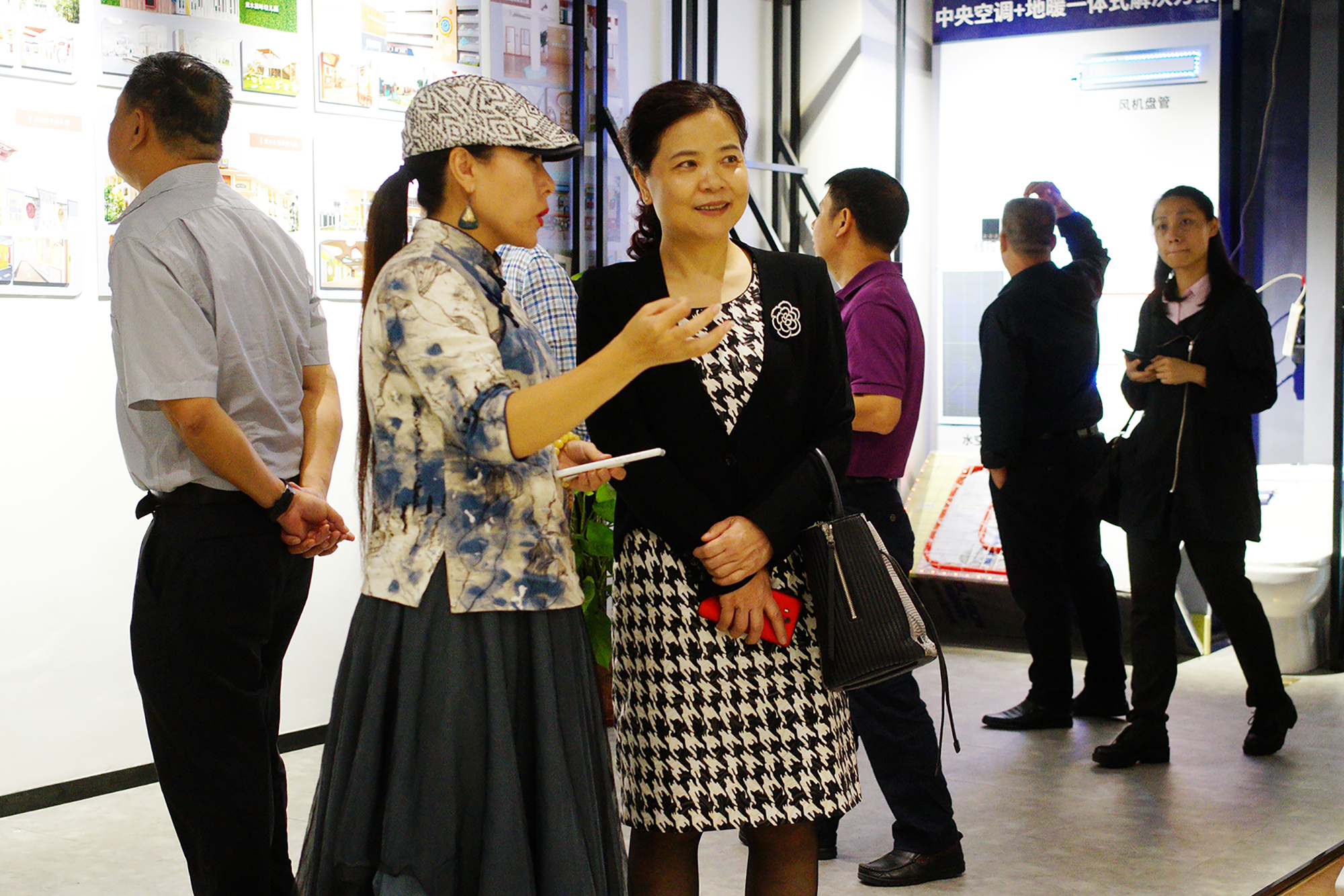 ▲佛山市政协副主席朱华仙(右)与泓儿文教设施负责人(左)交谈