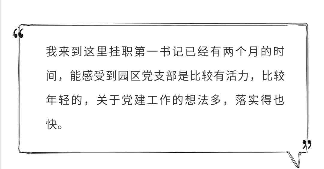 小新在现场了解到,如今园区党支部党员在实际工作中均担任着重要岗位,园区内的成长型企业也逐步建立了党支部,开展党建工作。园区党支部通过以自身党建带动园区企业发展党建,通过党员的先锋模范作用更好地为园区企业做好服务,实实在在做到了以党建促服务,践行共创、共享、共发展的理念。