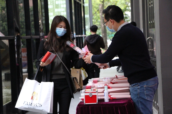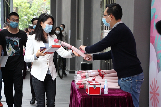 “今年过节跟往年不一样,大家戴着口罩,现在心情很复杂,很难用语言形容。” “目前虽然疫情影响没有之前那么大了,但最重要的还是各自做好自己的防护措施,积极投入到工作中去,把耽误的工夫都补回来。” “每年新媒体园都对我们女士特别关爱和照顾,非常感谢!我想把疫情发生期间传播真爱的人和事都写下来,作为历史的见证。” “我很喜欢花,疫情过后最想去花店逛逛。” “在家待久了实在憋得慌,很想早日带孩子出去走走看看、亲近大自然。” “很想大吃一顿,吃什么都行,就是要过把瘾。” “我刚入职不久,很期待疫情过后,看看同事们脱下口罩的样子,重新认识大家。” …… 在这个特别的日子里 特别的爱要献给特别的你 3月6日上午 在新媒体园体温测试点 园区为每位复工企业的女员工 送上了一份女神节的专属礼物 一张张特别的笑脸 一声声爽朗的笑声 一句句温暖的祝福 在这个特殊的日子 友爱并没有被隔离 口罩也挡不住大家的笑脸 尽管此刻疫情阴霾还没有完全消散 但在这个属于普天下所有女性的节日 她们值得被宠爱 愿各位女神的生活 如花样年华般绚烂多彩 |
