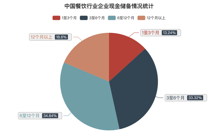 困境一:被现金流紧张扼住了喉咙 风铃企业大数据风险预警平台通过大数据挖掘和机器学习建模,定位到当前受疫情影响严重的餐饮行业进行全样本、细粒度的数据分析与建模,对每一个企业进行全面的风险量化与分级。研究结果显示,餐饮行业对流动性顾客依赖性很强,疫情的“隔离”导致门店客流断崖式下跌,销售收入的压力增加。北京市餐饮行业协会发布的报告显示,受疫情影响69.1%的餐饮企业在疫情期间暂停门店经营,整体营收下降超80%。根据数据统计,截止2019年底,我国餐饮行业现存在营企业 42.04万余家(不含个体工商户),其中大部分企业现金储备并不充裕。非常严酷的现实告诉我们,在从2020年1月中旬开始的疫情影响下,目前已有24.49%餐饮企业因资金不足实际已处于停业或倒闭状态。 13.24%的餐饮企业能坚持1-3个月有5.57万家,33.32%的餐饮企业能坚持3至6个月有14万家,34.84%的餐饮企业能坚持6-12个月有14.6万家。对剩余企业进行进一步测算发现,如果疫情持续下去,仅有5.9万家(占比18.6%)的餐饮企业可以维持到今年年底。值得注意的是,如果接下来疫情在短期内无法得到控制,餐饮行业必然面临更大的生存压力,受疫情因素影响,预计今年6月(每年餐饮业退出较高月份)退出的餐饮企业将高于往年。