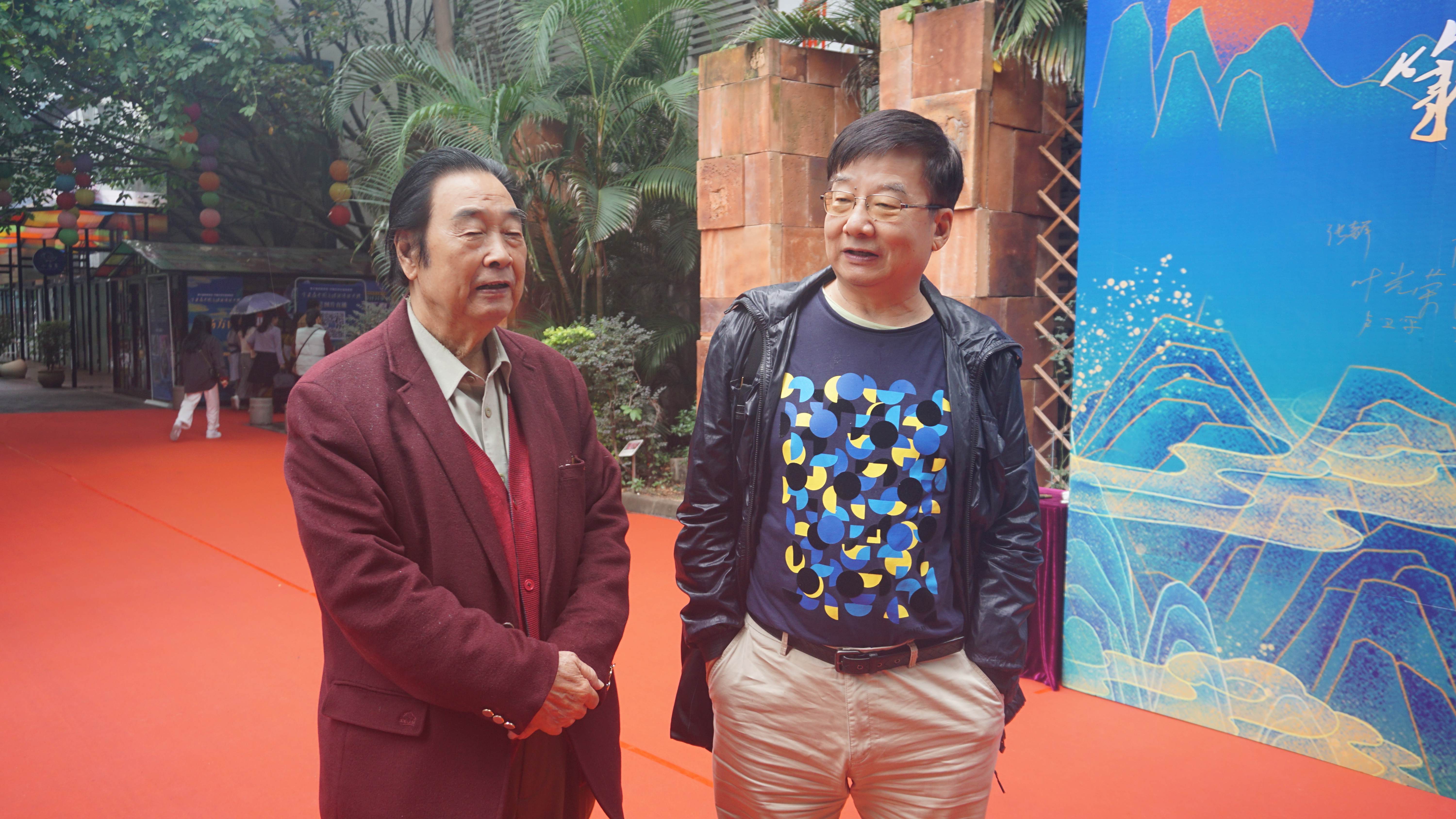 ▲颁奖典礼开始前,本届长诗奖评委会主任叶延滨先生(右一)与获奖诗人峭岩一起互动。