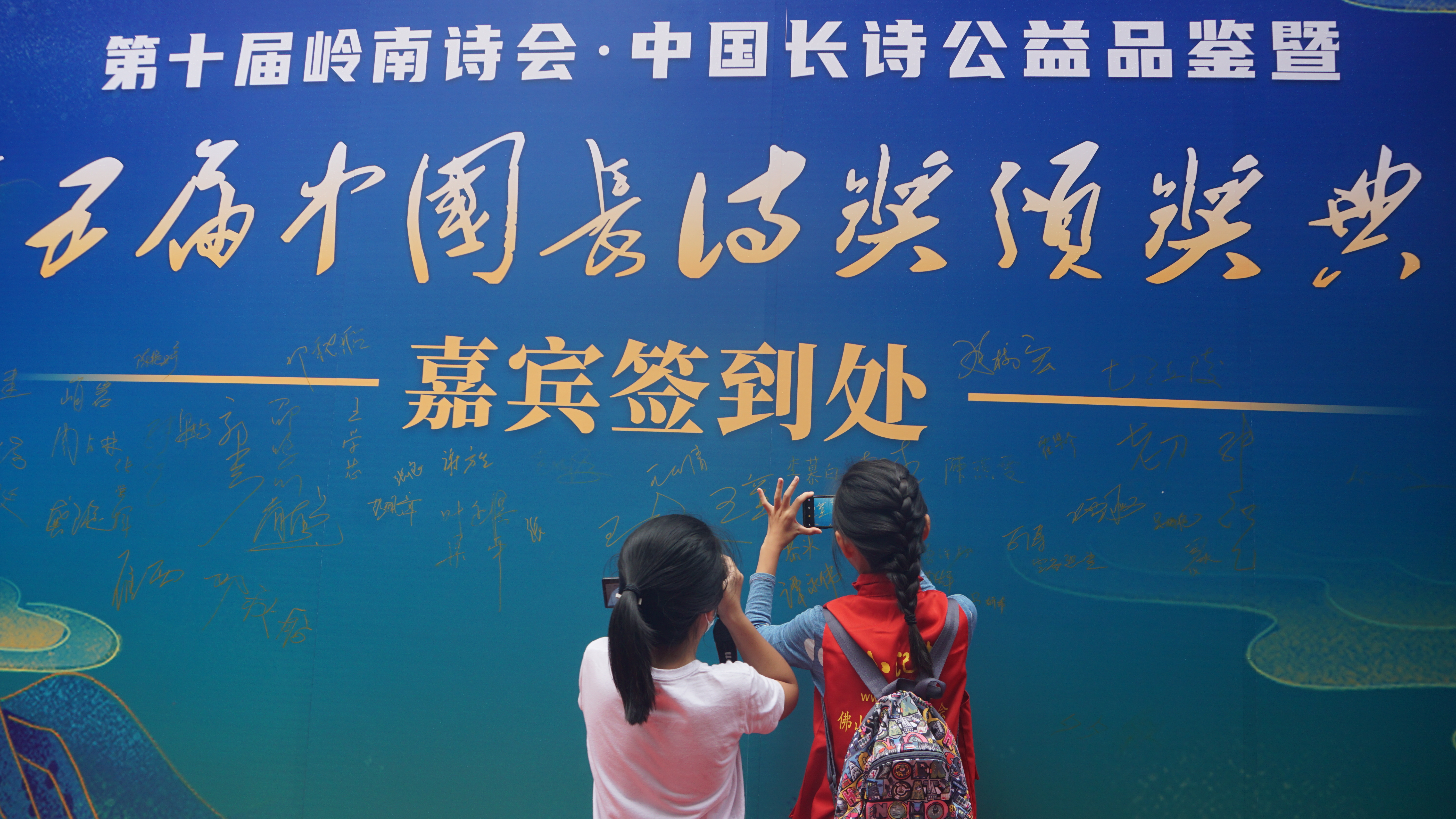 ▲这场诗歌盛事,还吸引了不少小朋友的关注。小记者团看到一笔一划的签名,得赶紧拍下来!