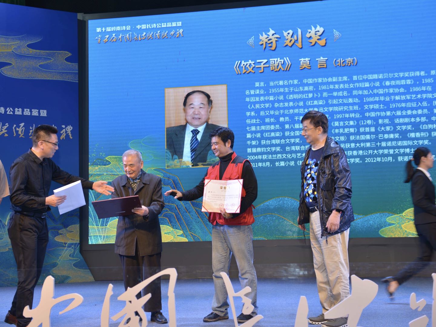 颁奖典礼上,本届长诗奖评委会副主任、广东省作家协会副主席丘树宏代表主办方宣读获奖名单。中国作家协会副主席、诺贝尔文学家获得者、著名作家莫言的长诗《饺子歌》荣获本届长诗奖特别奖;四川诗人梁平的《重庆书》、鲁迅文学奖获得者曹宇翔的《珠穆朗玛高峰》、湖南诗人胡丘陵的《戴着口罩的武汉》、江苏诗人王学芯的《草塘》、北京诗人峭岩的《七月,七月》获最佳成就奖;三届援藏干部、西藏自治区文联副主席陈人杰的《山海间》、上海诗人张予佳的《磷火是迷醉的药引》、广东诗人顾偕的《我在太阳系》、安徽诗人方文竹的《内循环》、河南诗人张竹林的《挂在树梢上的线装书》获得最佳文本奖;青海诗人马文秀的《老街口》、甘肃诗人汪渺《白马史诗》、山东诗人散皮的《传他,或者自传》和广东诗人郭杰广的《淬火集》共同获最佳新锐奖。