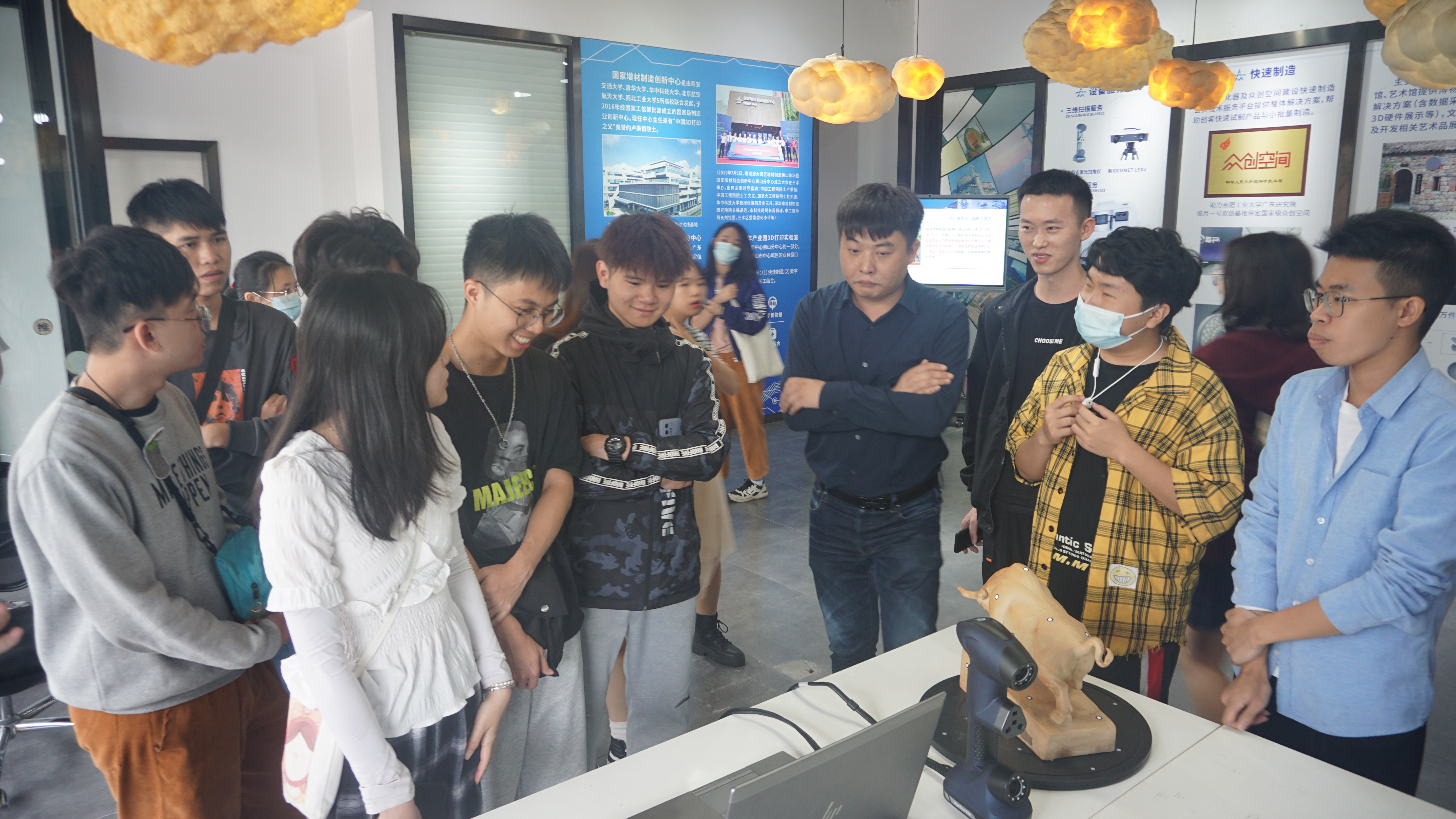 另一方面,“300米见绿、500米见园”已成为这座“颜值”城市的标配,岭南文化和水乡风情独树一帜。 不仅如此,近年来在双创热潮之下,佛山的城市标签,远不止人们常说的第一印象,功夫和美食。这里科技创新平台之多,远超你的想象,这里还会有年轻人喜欢的工作、有他们中意的生活环境、有宽容、多元的文化氛围、有容易就业的平台、有他们引以为豪自豪的城市(国货)品牌…… ▲参访当天,新媒体园3D打印实验室备受同学们的喜爱 论拥抱“后浪”的N种正确方式