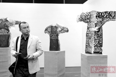 金属雕刻作品 融入中国元素 “在佛山住了12天,我感到很开心,感觉周围的环境很新鲜。”2012年刚毕业于英国伦敦中央圣马丁艺术与设计学院的Vicky Frazer是创作营的成员之一,她对佛山的印象十分深刻,她说,通过佛山感受中国文化的魅力,尽管这是她第一次踏上中国的土地,却有很多的收获。“这里什么都有,周围的人很热情,我能找到很好的创作灵感,我希望下次有机会再来佛山。” 来自欧洲的四位金属雕刻艺术家在创作营进行为期12天的创作、交流后,在展览会现场集中展出创作的多个大型雕刻作品,给观众带来了一场兼具视觉冲击力与艺术熏陶的金属艺术创作盛会。四位艺术大师的作品风格各异,经过12天的火烧电焊、精心雕琢,他们联袂创作,展现金属艺术创作的丰富性与多样性。 当天晚上,随着礼炮的响起,Roberto Cipllone、Christiane Pott-Schlager、Law Kwok Hung、Vicky Frazer等四位金属雕刻艺术家揭开了覆盖在金属艺术精品上的面纱。据新媒体产业园有关负责人介绍,本次展览会的作品在结束展览之后将会摆放在新媒体产业园内,作为新媒体产业园的标志之一。 其中,Law Kwok Hung的作品“丝路音韵”融入中国元素,在钢板上展现出一个琴女手抚琵琶时的手指细节,其逼真、精致的细节雕刻令现场嘉宾们赞叹不已;Vicky的作品“龙袍”同样体现中国元素,从一块完整的铁板,变成缕空的“布料”,将纺织的柔和金属的刚结合在一起;最吸引人的是Christiane Pott-Schlager的作品“风帆”,它是当天晚上体型最大的金属艺术品,赢得观众们的赞叹。