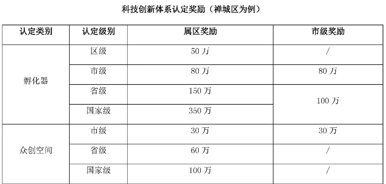 那么按目前政策,在佛山认定为国家级孵化器、国家级众创空间,累计可以拿到多少政策大礼包呢?