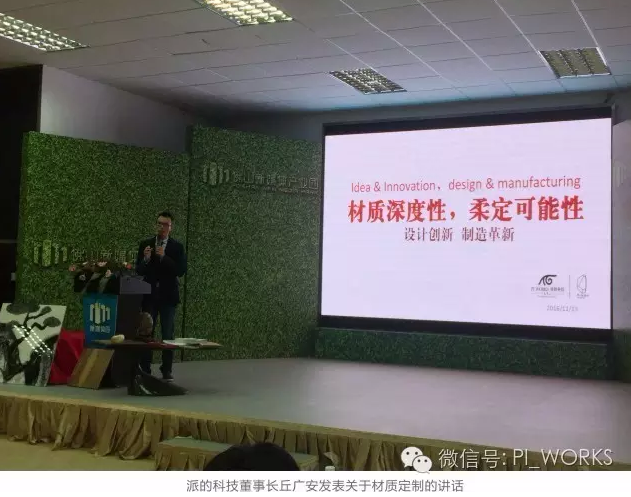 接着是派的科技董事长丘广安先生的主题发言 “材质深度性,柔定可能性”。基于未来工业发展的趋势,给在座的大木兄弟介绍关于“定制·设计·产品”的派的定制可能性,其中包括针对设计师的瓷砖、琉璃石、不锈钢、壁纸、牛皮复合板、酒庄特酿等高端定制,为设计师的灵感得到更多元化的实现。派的科技作为一个材料库,和各位设计师强强联合,通过设计创新达到制造革新的目的,以系统构想取代单纯设计的战略,成为产业链的上端,以无形设计驱动有形价值革新。
