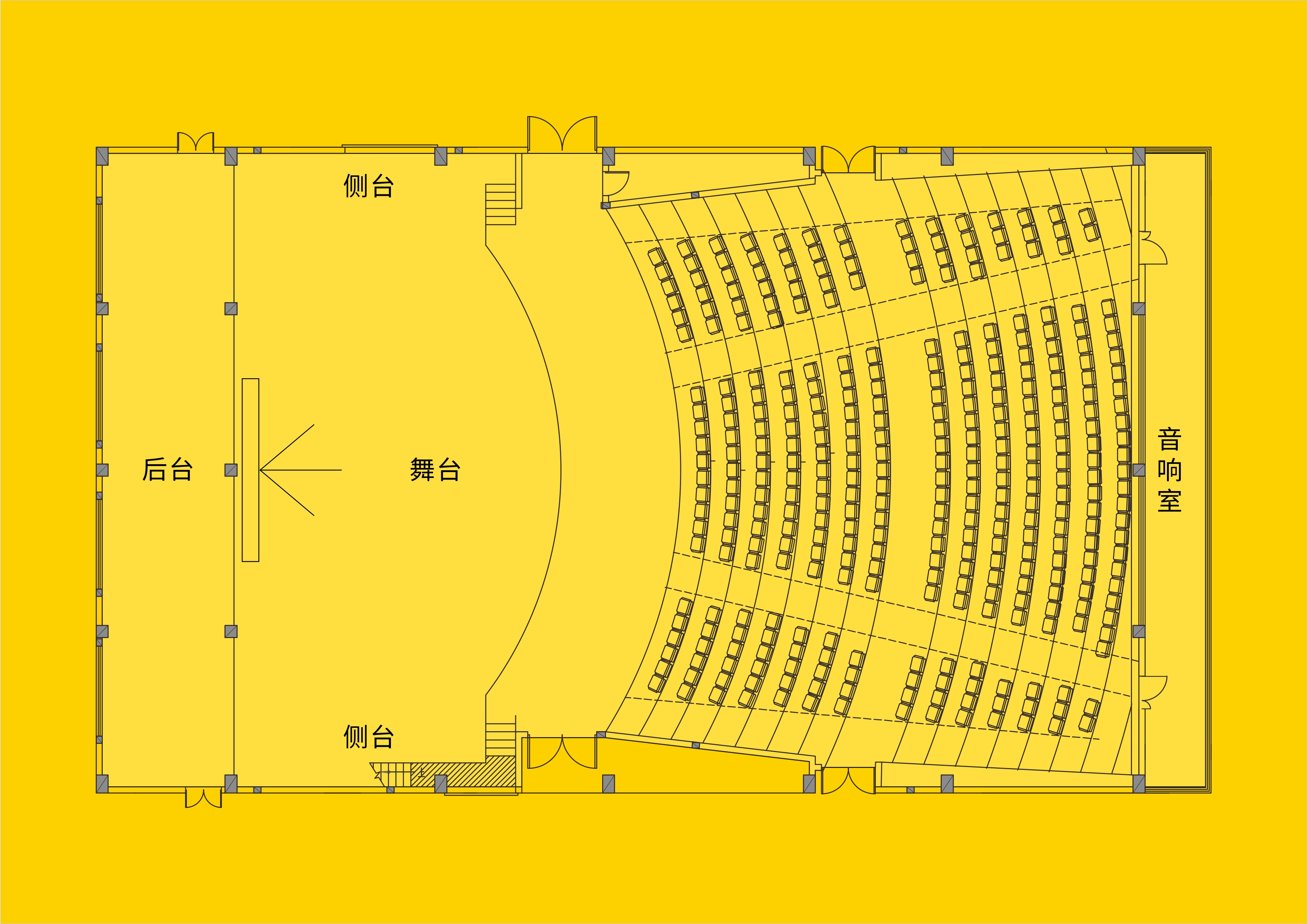![]() 云空间共分为后台、演出区、观众席、音控房四部分